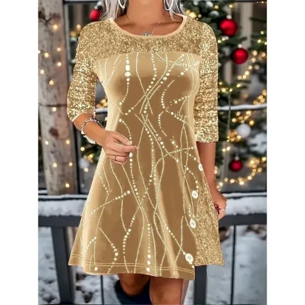 Women’s Mini Dress A Line Dress Casual Daily Holiday Regular Fit Graphic Long Sleeve Crew Neck Red Gold Green Fall Winter