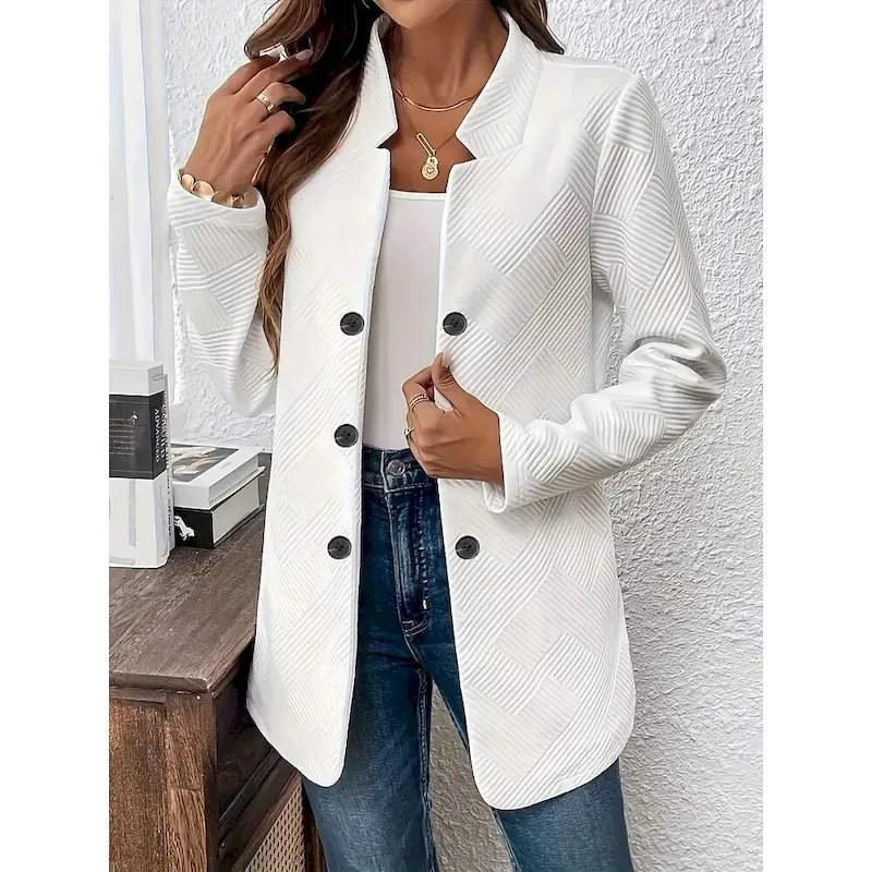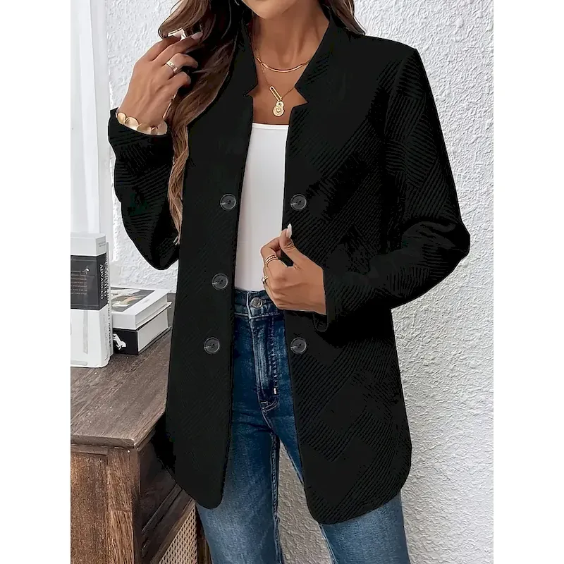 Women’s Blazer Comfortable Breathable Buttons Casual Plain Office Street Casual Daily Wear Single Breasted Regular Stand Collar Regular Fit Long Sleeve Outerwear Black White Pink Summer Fall