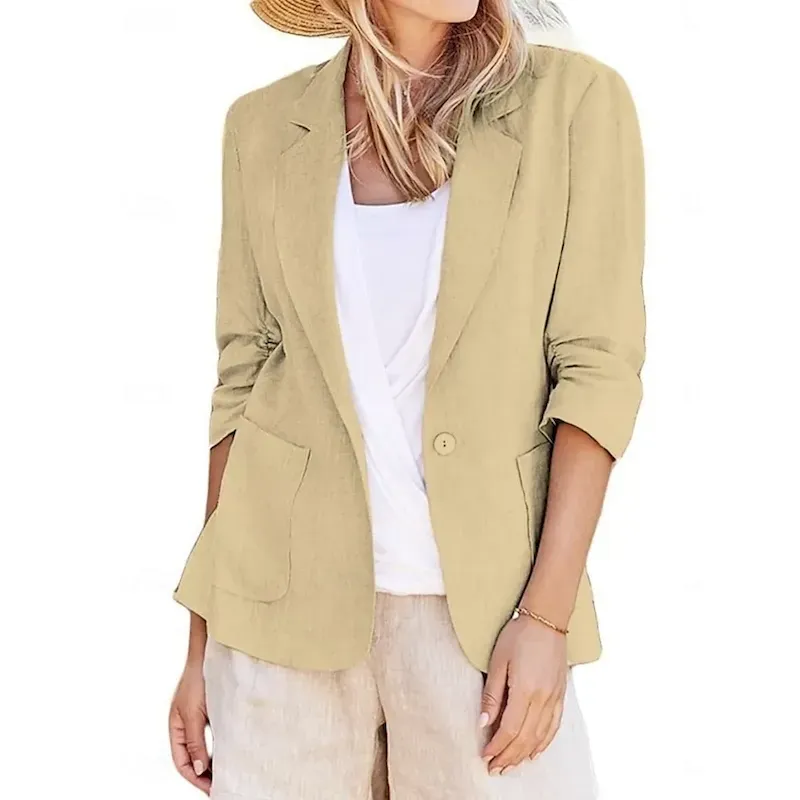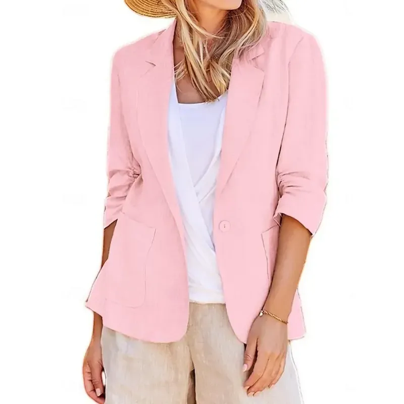 Women’s Blazer Comfortable Breathable Pocket Buttons Fashion Daily Plain Outdoor Casual Daily Single Breasted Regular Lapel Regular Fit Long Sleeve Outerwear Black White Pink Spring Fall
