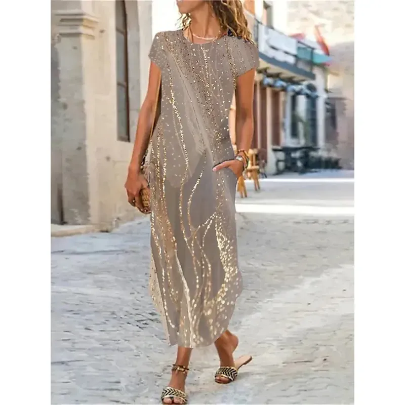 Women’s Maxi Dress Shift Dress Ombre Marble Pocket Split Crew Neck Daily Date Short Sleeve Summer Spring