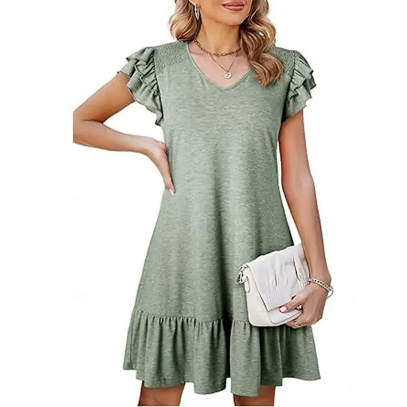 Women’s Mini Dress Casual Dress A Line Dress Stylish Basic Casual Vacation Daily Regular Fit Plain Short Sleeve V Neck Black Pink Green Summer Spring