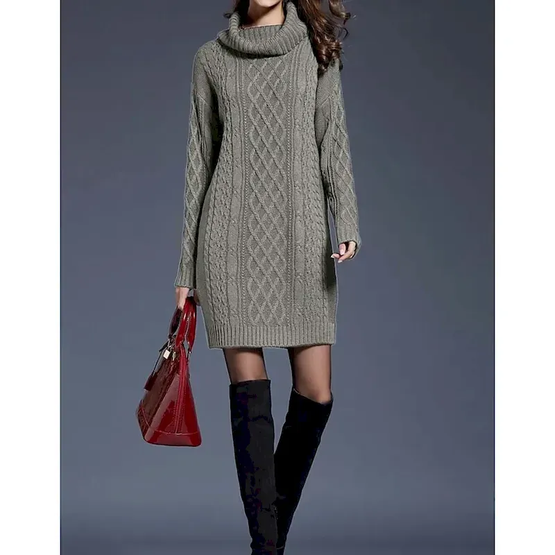 Women’s Sweater Dress Casual Soft Pure Color Cable Turtleneck Knitted Long Sleeve Long Tops Knit Outdoor Daily Weekend White Wine Fall Winter