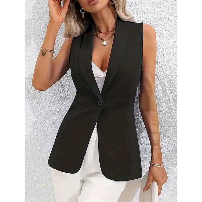 Women’s Vest Blazer Comfortable Breathable Pocket OL Style Modern Plain Formal Office Street Casual Single Breasted Regular Turndown Regular Fit Sleeveless Outerwear Black Pink Summer Spring