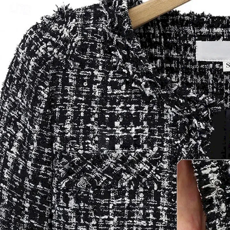 Women’s Winter Coat Warm Comfortable Pocket Buttons Fashion Houndstooth Outdoor Holiday Going out Single Breasted Regular Crewneck Regular Fit Long Sleeve Outerwear Black Fall Winter